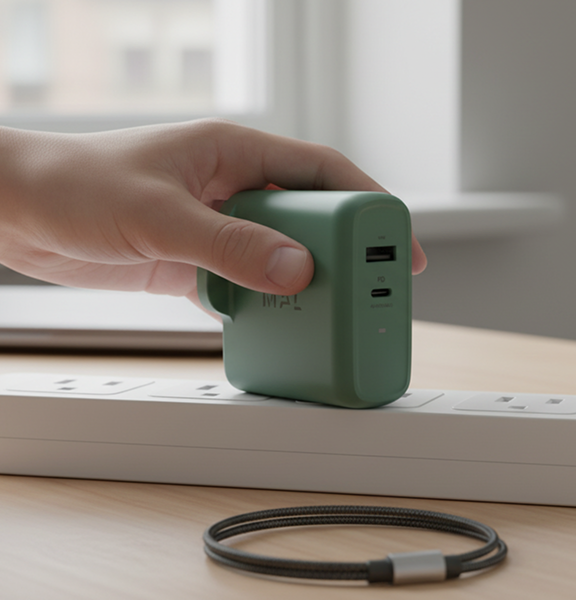 شاحن جداري بقدرة 68 واط يعتمد على موصلات نيتريد الغاليوم  بدلاً من الموصلات التقليدية المصنوعة من السيليكون، هذا التغيير يسمح